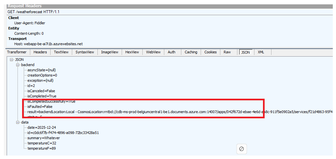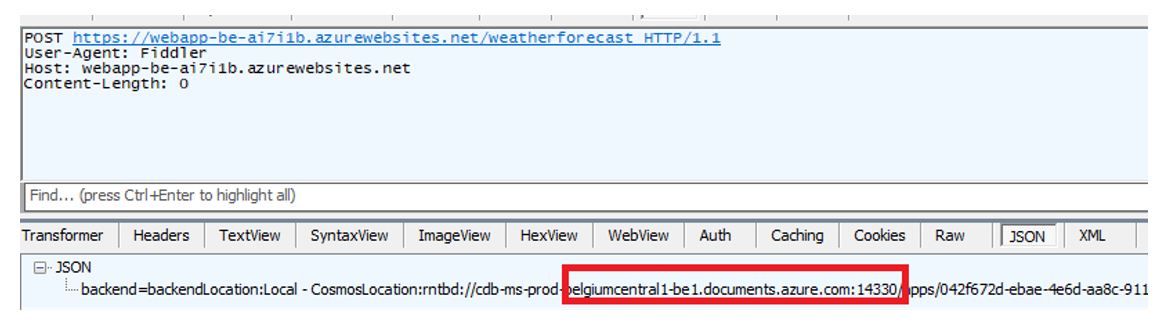 I developed the API in such a way that it indicates which Cosmos region was used by the backend service to perform the operation.
