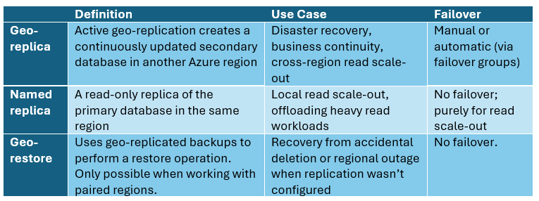 Let’s first analyse the different data replication possibilities with Azure SQL. Table 1 summarizes the different capabilities.