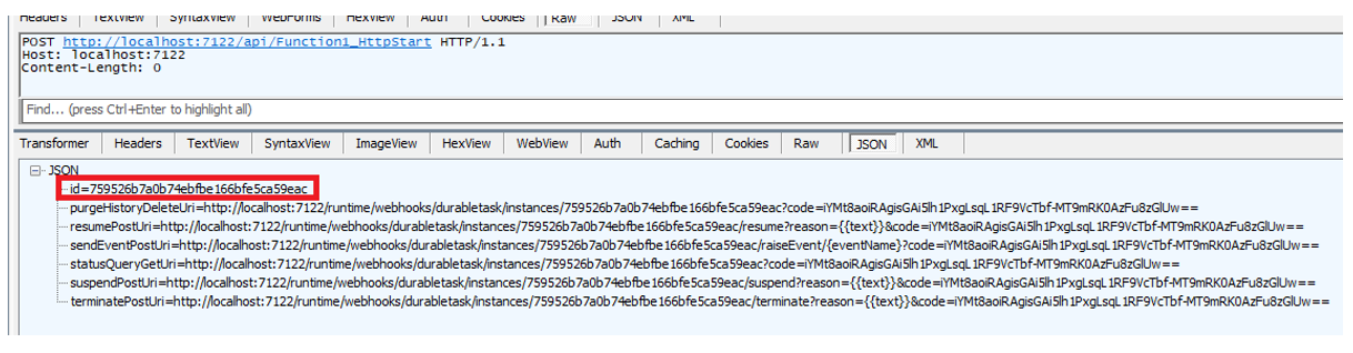 logger.LogInformation(”Started orchestration with ID = ‘{instanceId}’.”, instanceId);