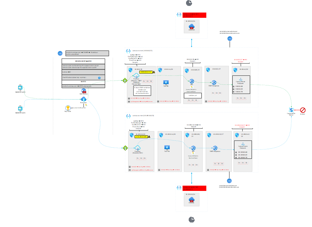 Moreover, as we will see later, with other resources such as Storage Accounts, a single DNS zone would force us to update the DNS records upon failover, causing a minimal downtime. Bottom line: using multiple DNS zones prevents issues during failover.
