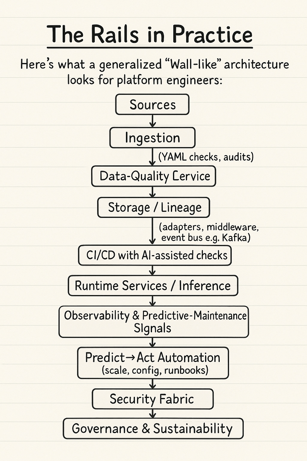 Wall embodied this. Instead of clogging DAGs with checks, it made them independent services. Results flowed into Kafka, where other systems could consume them. Checks weren’t bound to pipelines anymore; they became a decoupled, reusable rail.