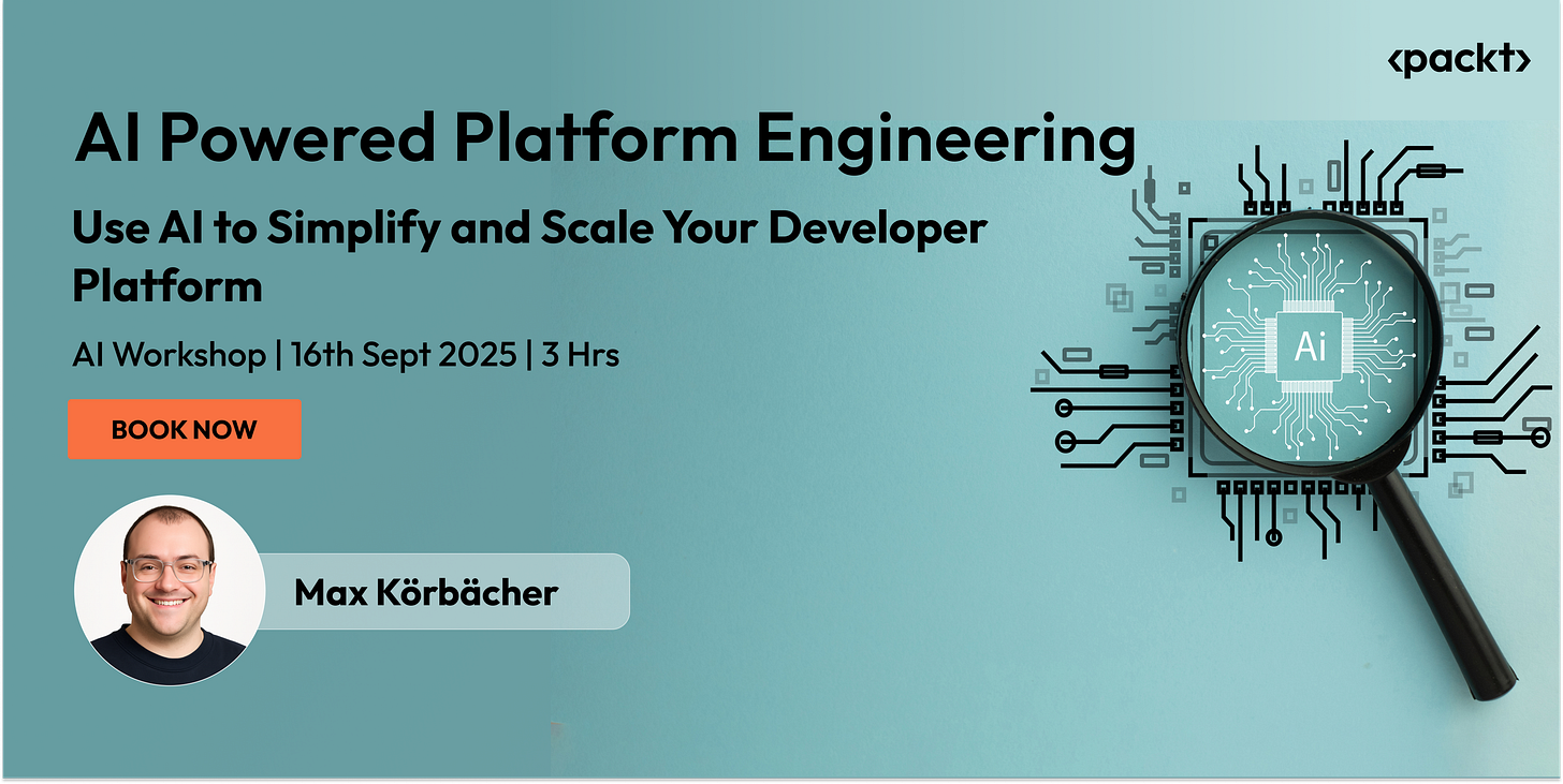 On September 16, join CNCF Ambassador Max Körbächer for a 3-hour live workshop on how to design internal platforms with AI baked in.