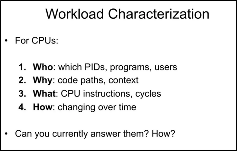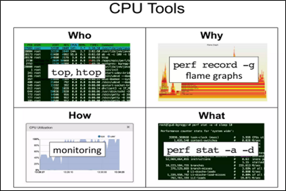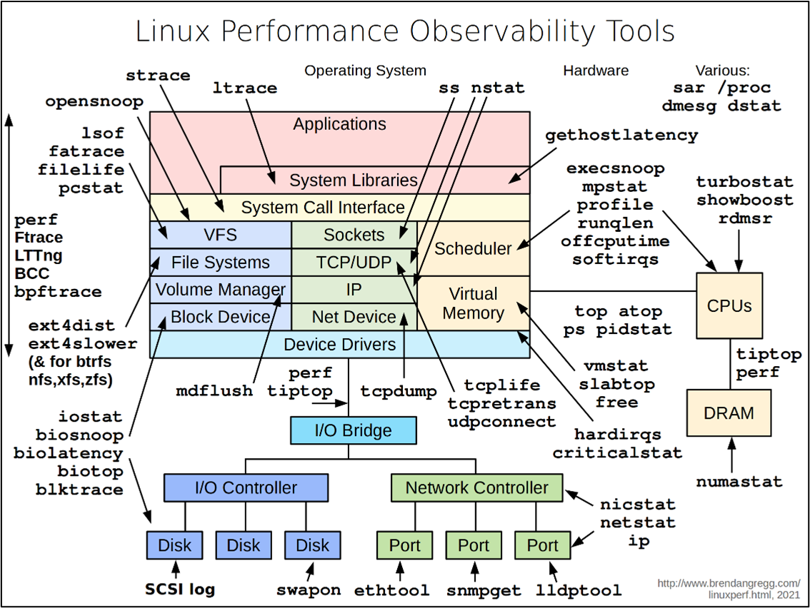 Borrowing from Brendan Gregg’s wonderful presentation (though old, it’s still relevant):